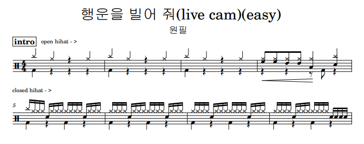 [은규네스튜디오] 드럼악보 원필 - 행운을 빌어 줘(live cam)(easy)