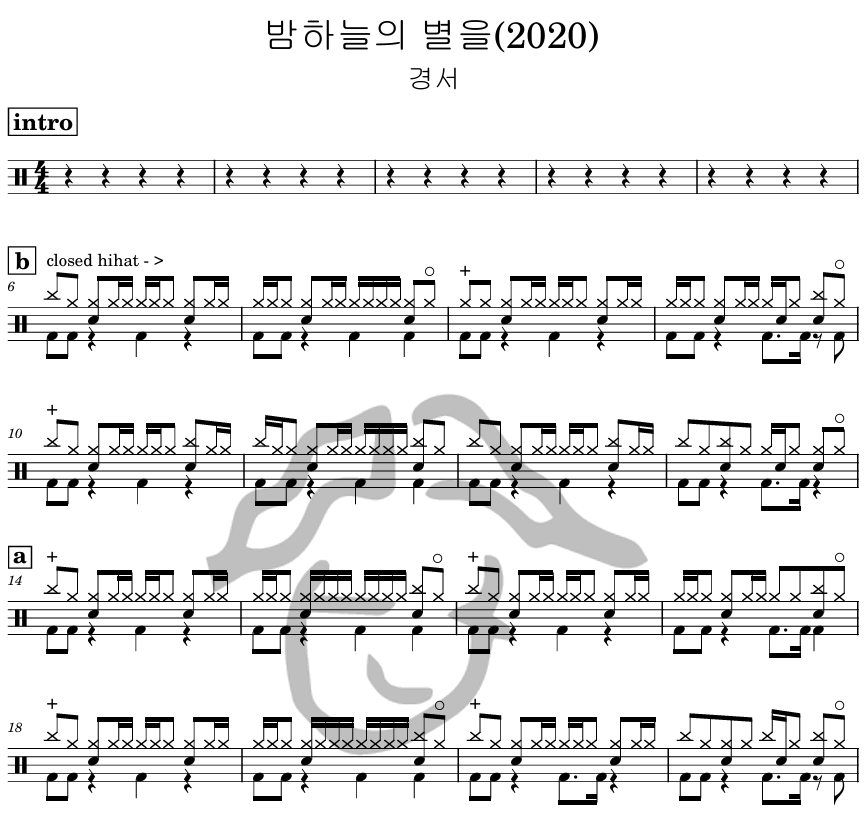[은규네스튜디오] 드럼악보 경서 - 밤하늘의 별을(2020)