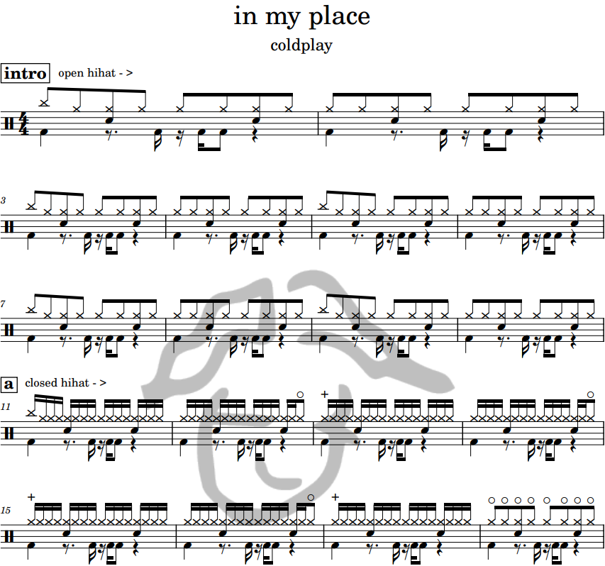 [은규네스튜디오] 드럼악보 coldplay - in my place