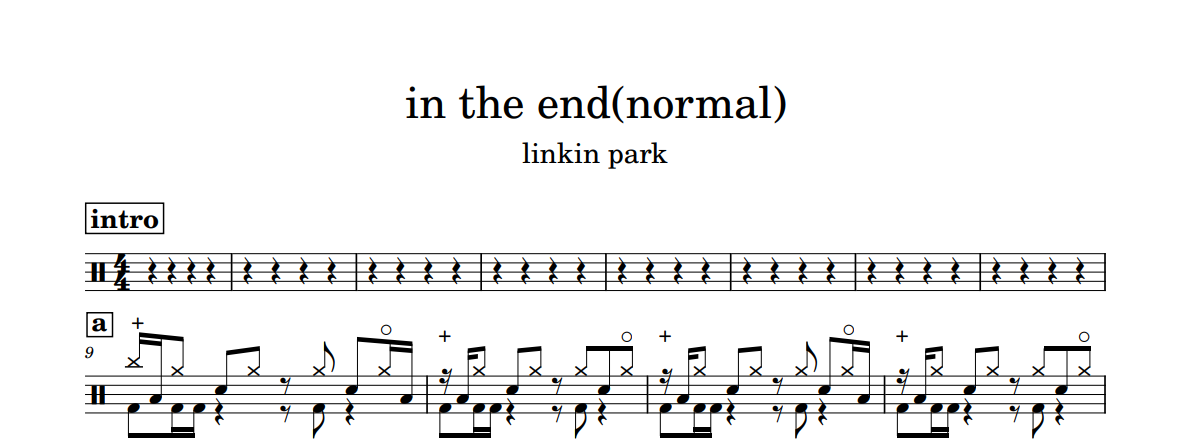 [은규네스튜디오] 드럼악보 linkin park - in the end(normal)