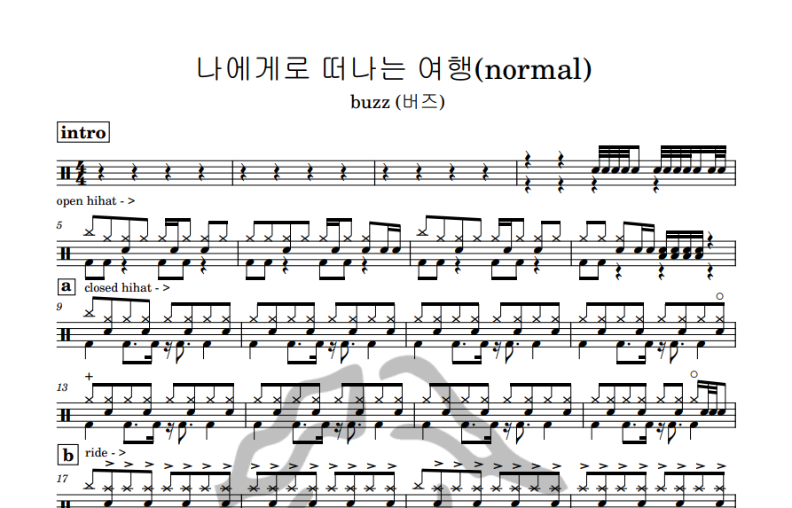 [은규네스튜디오] 드럼악보 buzz (버즈) - 나에게로 떠나는 여행(normal)