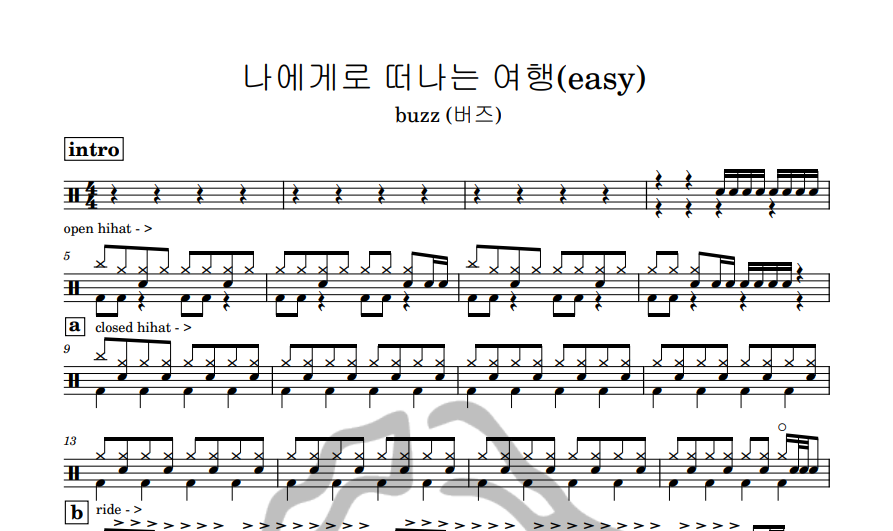 [은규네스튜디오] 드럼악보 buzz (버즈) - 나에게로 떠나는 여행(easy)