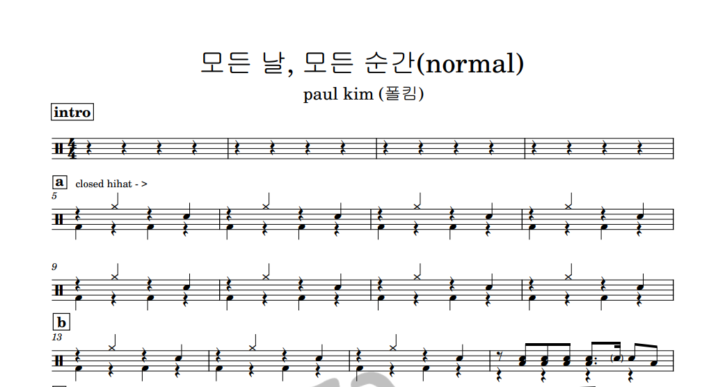 [은규네스튜디오] 드럼악보 paul kim (폴킴) - 모든 날, 모든 순간(normal)