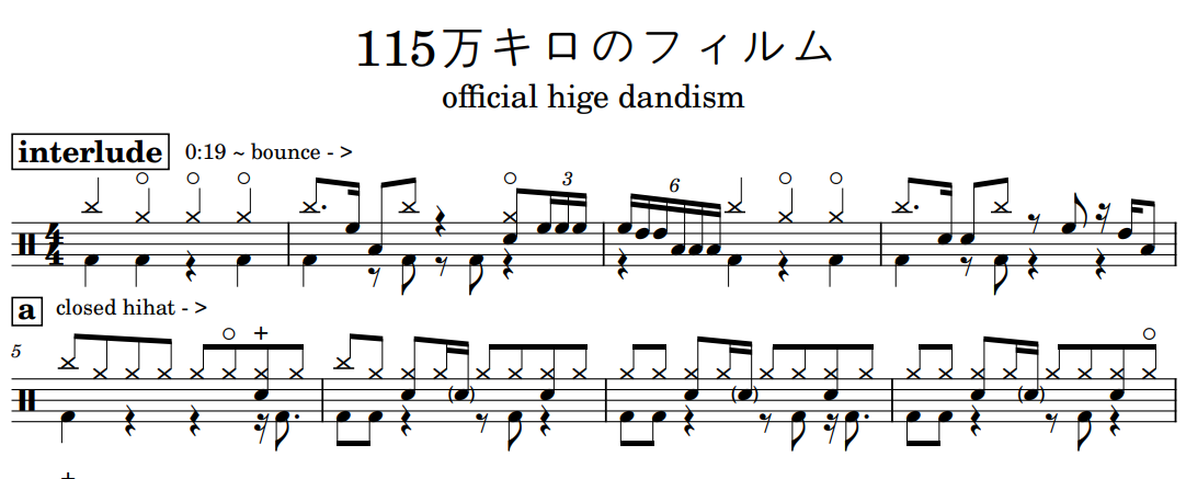 [은규네스튜디오] 드럼악보 official hige dandism - 115万キロのフィルム (115만 킬로의 필름)
