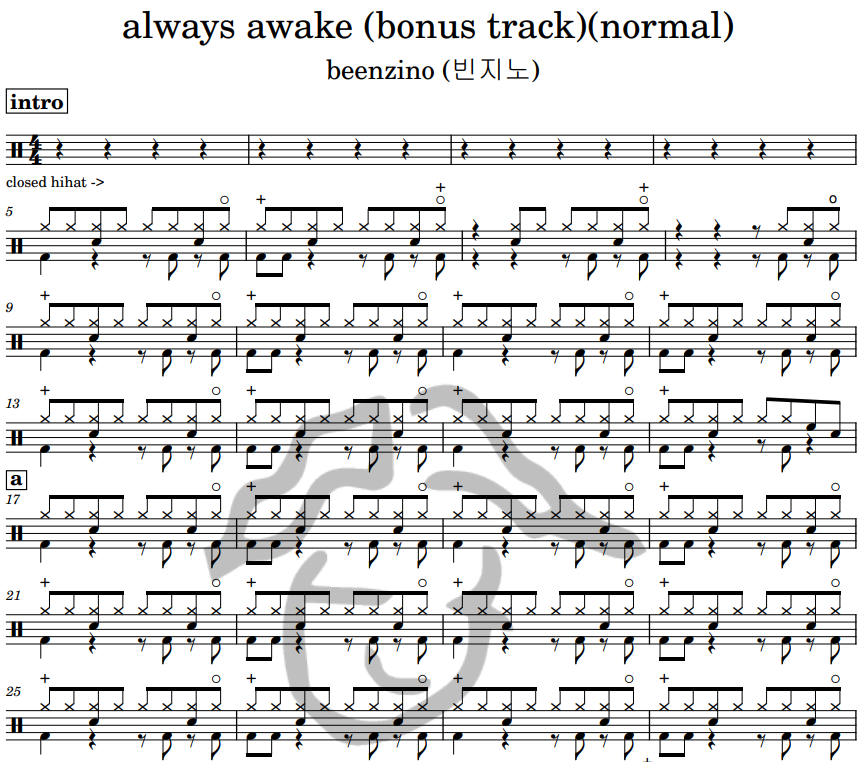 [은규네스튜디오] 드럼악보 beenzino (빈지노) - always awake (bonus track)(normal)