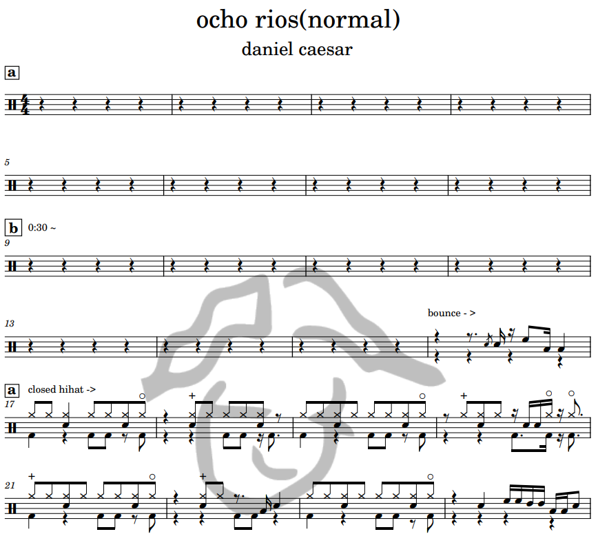 [은규네스튜디오] 드럼악보 daniel caesar - ocho rios(normal)