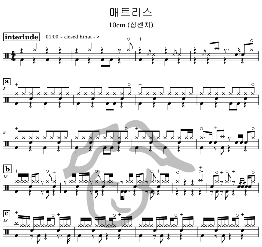 [은규네스튜디오] 드럼악보 10cm (십센치) - 매트리스
