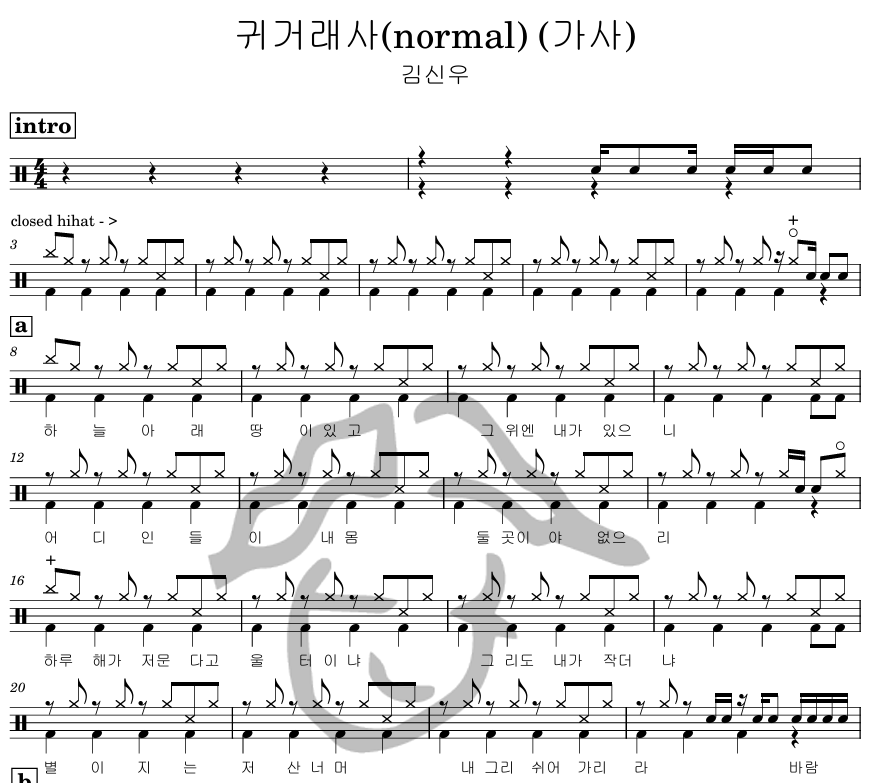 [은규네스튜디오] 드럼악보 김신우 - 귀거래사(normal) (가사)