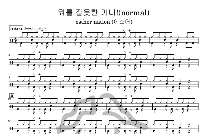 [은규네스튜디오] 드럼악보 esther nation (에스더) - 뭐를 잘못한 거니(normal)