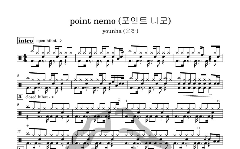 [은규네스튜디오] 드럼악보 younha (윤하) - point nemo (포인트 니모)