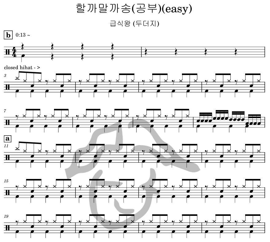 [은규네스튜디오] 드럼악보 급식왕 (두더지) - 할까말까송(공부)(easy)