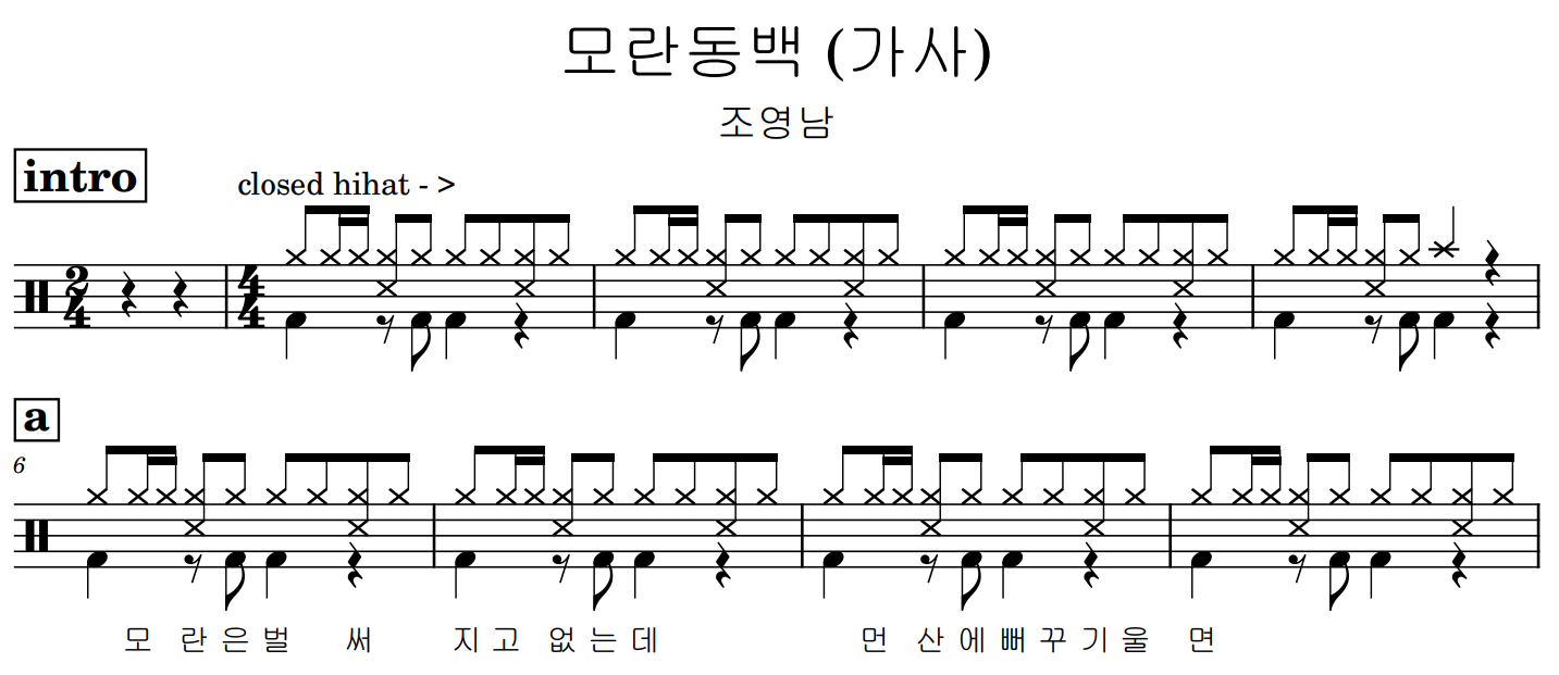 [은규네스튜디오] 드럼악보 조영남 - 모란동백 (가사)