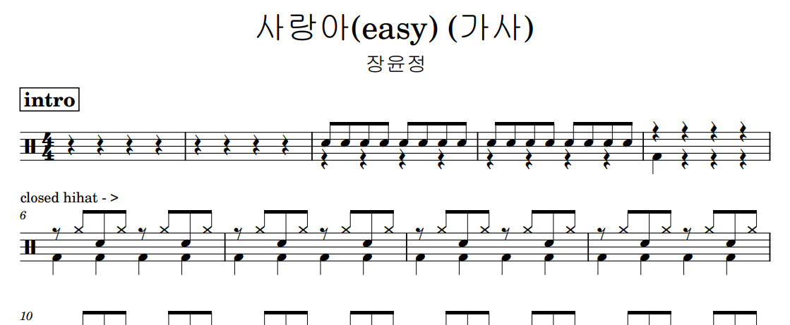 [은규네스튜디오] 드럼악보 장윤정 - 사랑아(easy) (가사)
