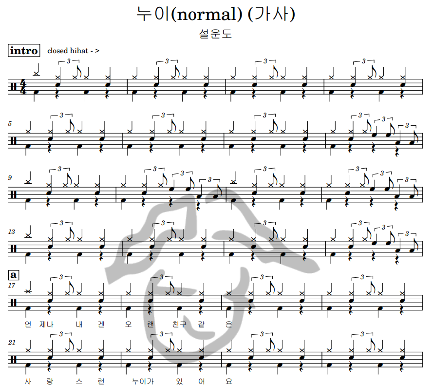 [은규네스튜디오] 드럼악보 설운도 - 누이(normal) (가사)