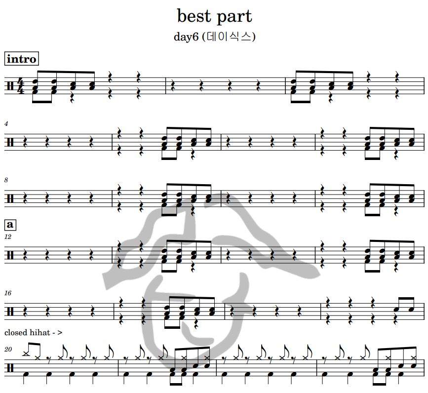 [은규네스튜디오] 드럼악보 day6 (데이식스) - best part