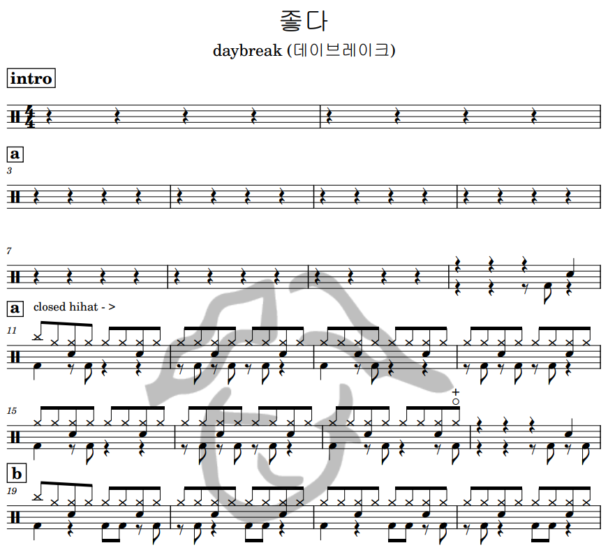 [은규네스튜디오] 드럼악보 daybreack (데이브레이크) - 좋다