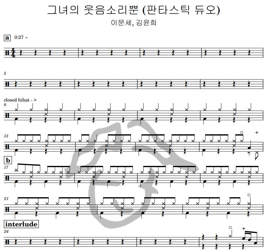 [은규네스튜디오] 드럼악보 이문세, 김윤희 - 그녀의 웃음소리뿐 (판타스틱 듀오)