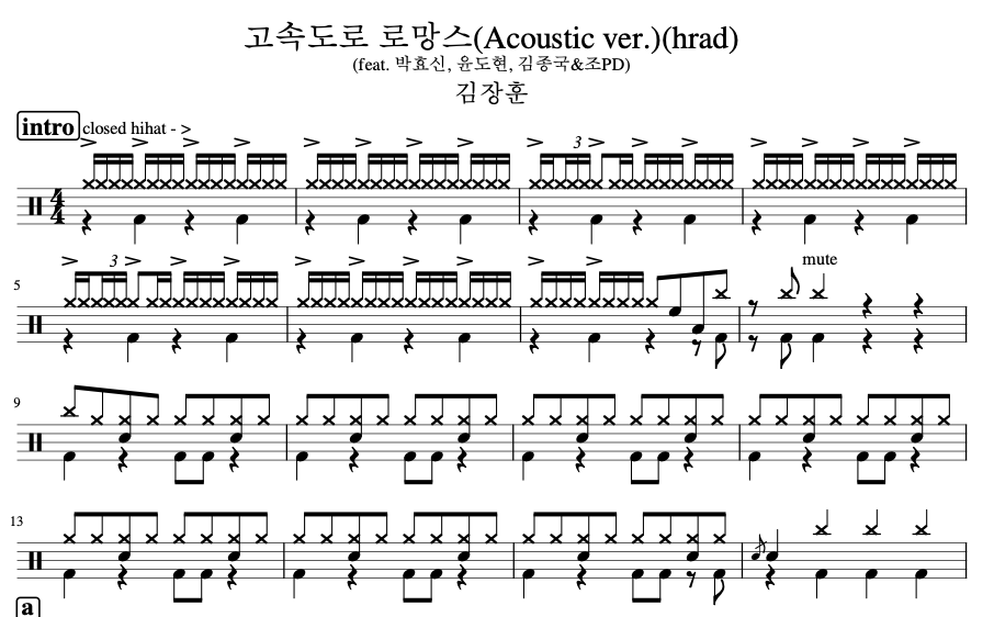 [은규네스튜디오] 드럼악보 김장훈 - 고속도로 로망스(acoustic ver.)