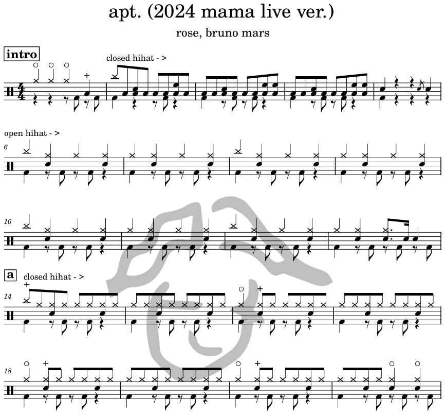[은규네스튜디오] 드럼악보 rose, bruno mars - apt. (2024 mama live ver.)