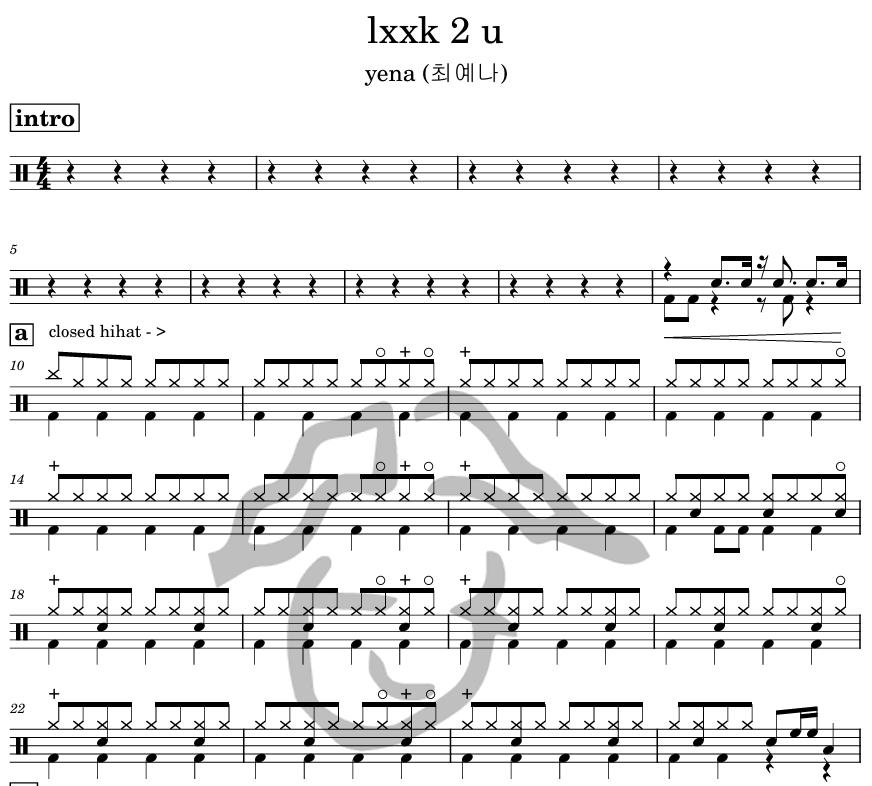 [은규네스튜디오] 드럼악보 yena (최예나) - lxxk 2 u