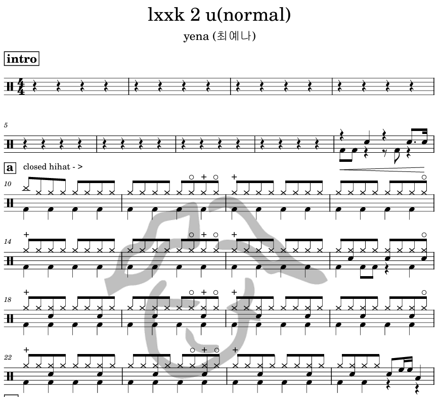 [은규네스튜디오] 드럼악보 yena (최예나) - lxxk 2 u(normal)