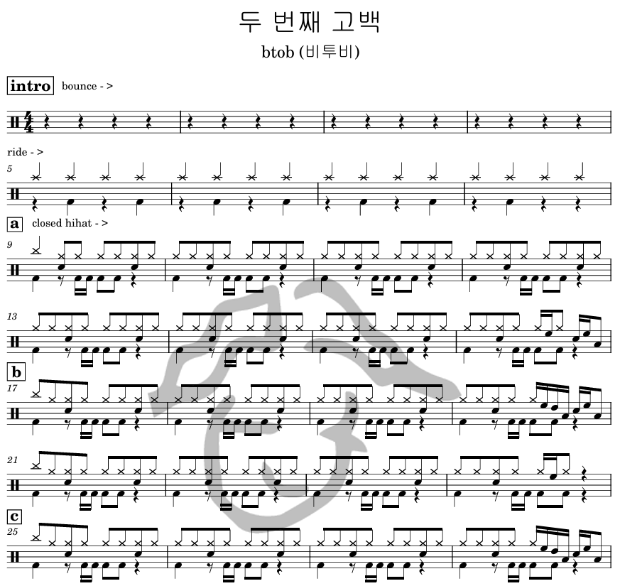 [은규네스튜디오] 드럼악보 btob (비투비) - 두 번째 고백