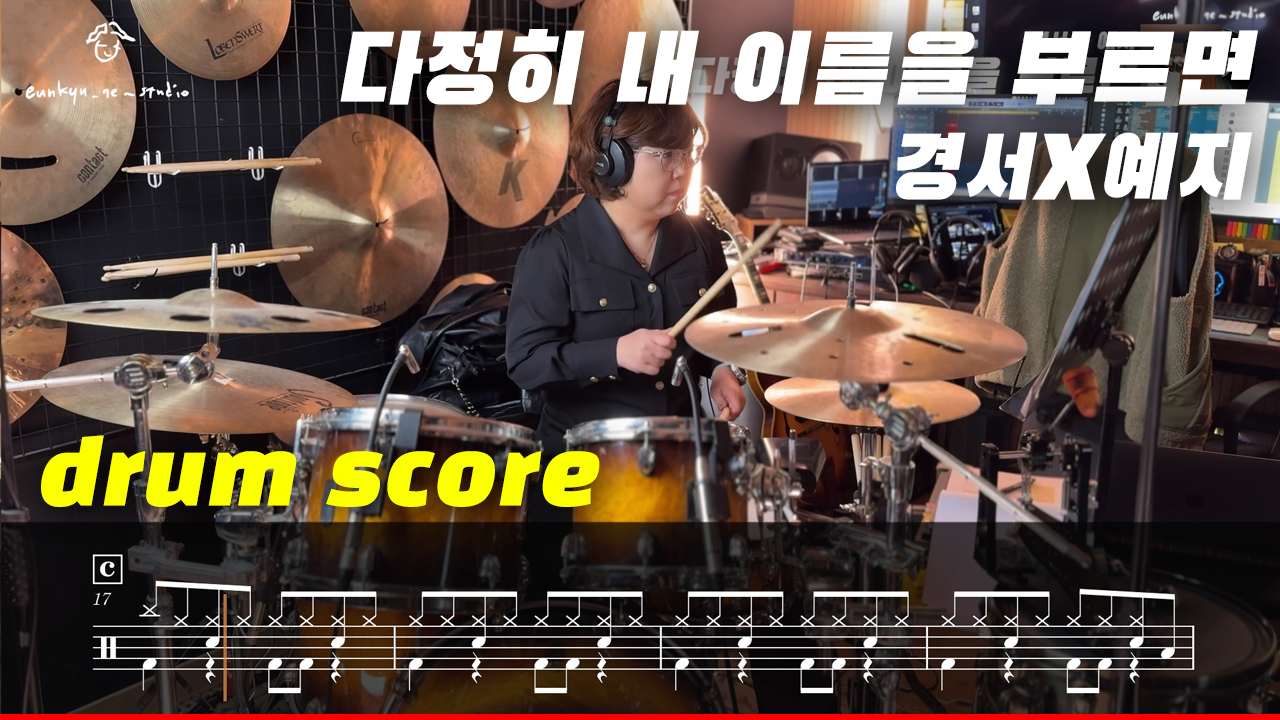 [은규네스튜디오] 드럼악보 경서예지, 전건호 - 다정히 내 이름을 부르면(easy)