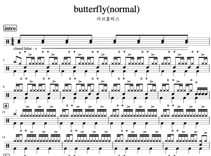 [은규네스튜디오] 드럼악보 loveholics (러브홀릭스) - butterfly(normal)