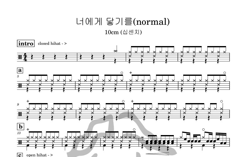 [은규네스튜디오] 드럼악보 10cm (십센치) - 너에게 닿기를(normal)