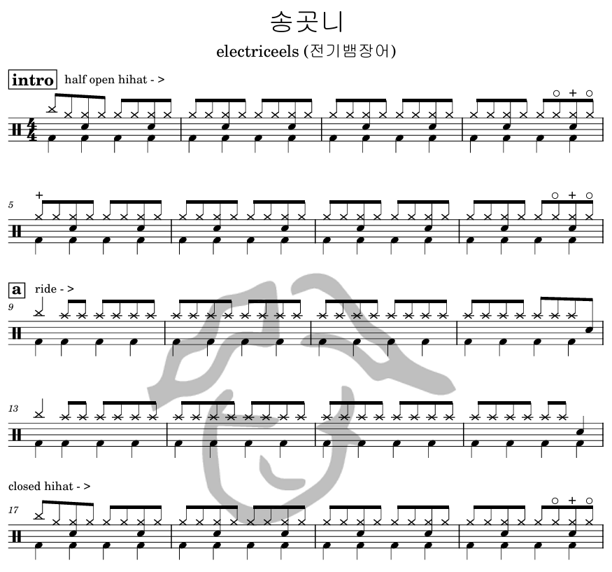 [은규네스튜디오] 드럼악보 electriceels (전기뱀장어) - 송곳니
