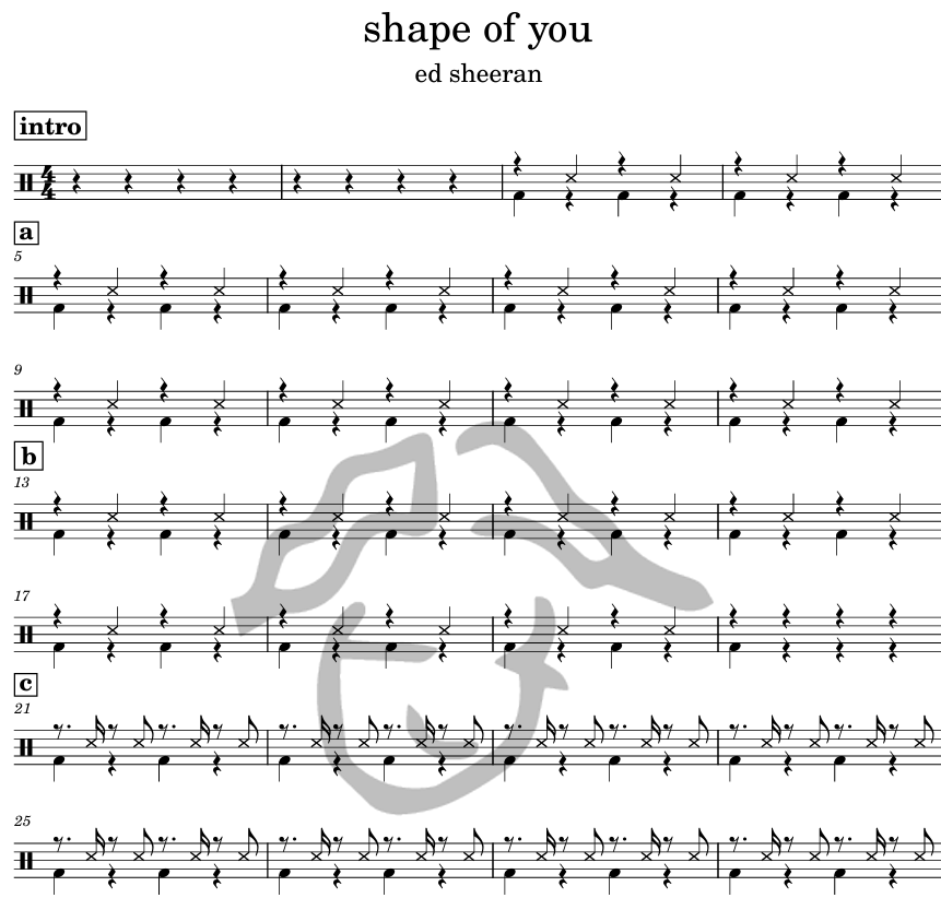 [은규네스튜디오] 드럼악보 ed sheeran - shape of you