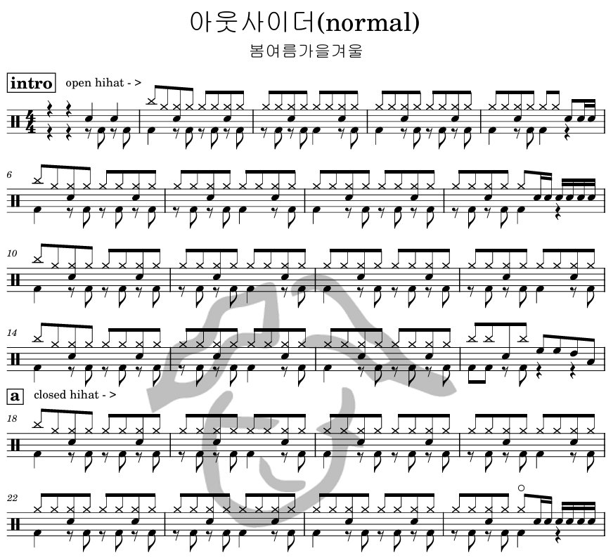 [은규네스튜디오] 드럼악보 봄여름가을겨울 - 아웃사이더(normal)