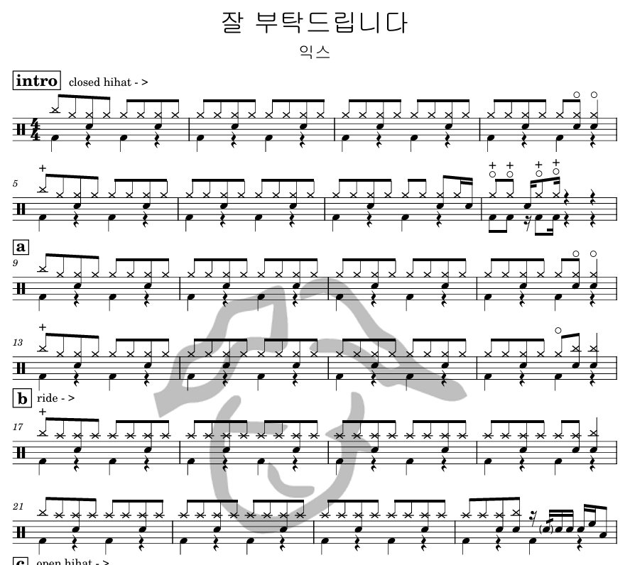 [은규네스튜디오] 드럼악보 익스 - 잘 부탁드립니다