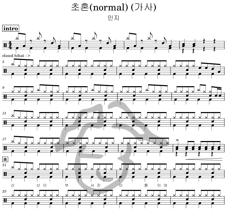 [은규네스튜디오] 드럼악보 민지 - 초혼(normal) (가사)