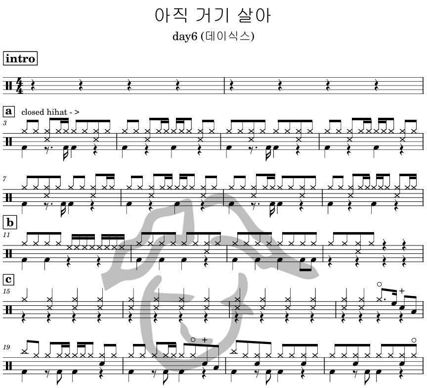 [은규네스튜디오] 드럼악보 day6 (데이식스) - 아직 거기 살아