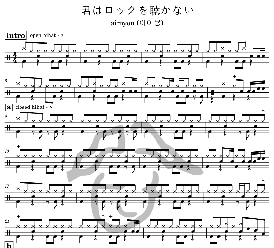[은규네스튜디오] 드럼악보 aimyon (아이묭) - 君はロックを聴かない / kimi wa rock wo kikanai (너는 rock을 듣지 않아)