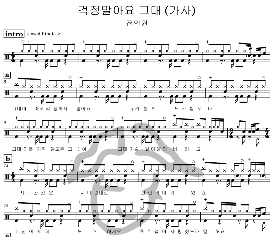 [은규네스튜디오] 드럼악보 전인권 - 걱정말아요 그대 (가사)