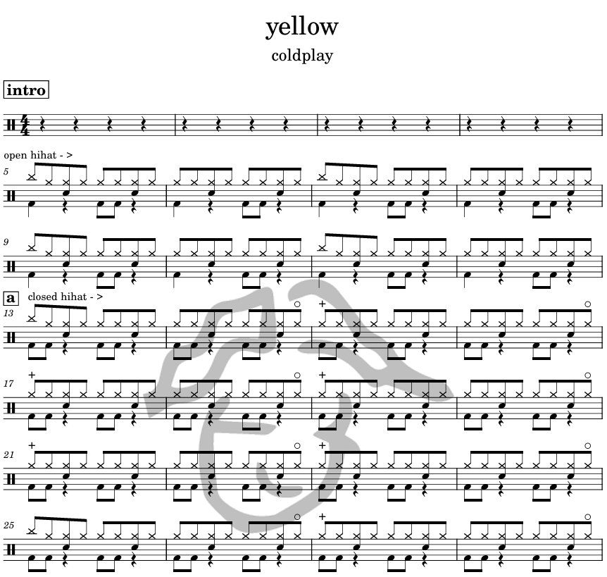 [은규네스튜디오] 드럼악보 coldplay - yellow
