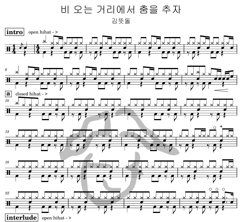 [은규네스튜디오] 드럼악보 김뜻돌 - 비 오는 거리에서 춤을 추자
