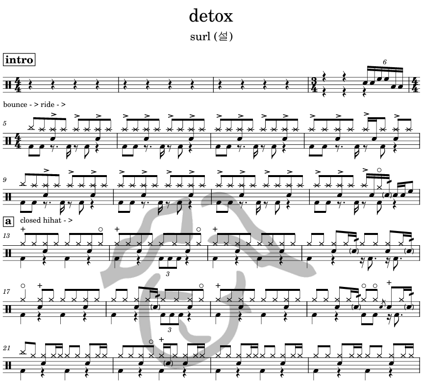 [은규네스튜디오] 드럼악보 surl (설) - detox