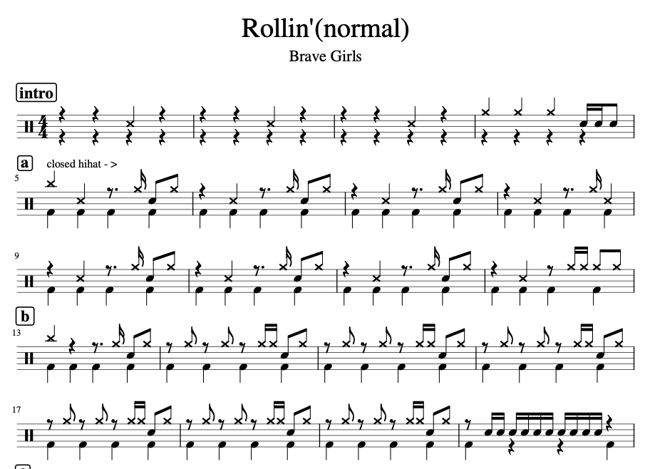 [은규네스튜디오] 드럼악보 bravegirls (브레이브걸스) - rollin' (롤린)(normal)