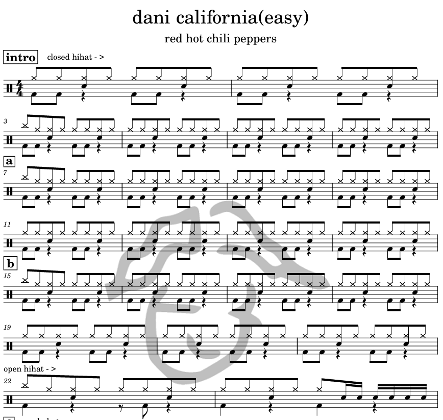 [은규네스튜디오] 드럼악보 red hot chili peppers - dani california(easy)