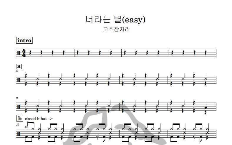 [은규네스튜디오] 드럼악보 고추잠자리 - 너라는 별(easy)