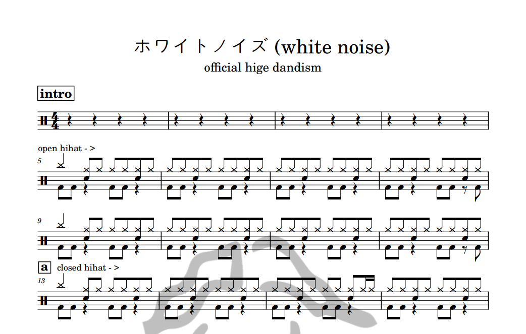 [은규네스튜디오] 드럼악보 official hige dandism - ホワイトノイズ (white noise)