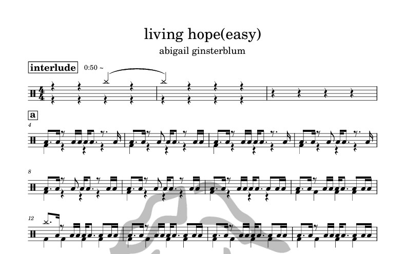 [은규네스튜디오] 드럼악보 abigail ginsterblum - living hope(easy)