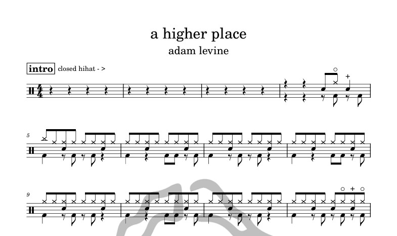 [은규네스튜디오] 드럼악보 adam levine - a higher place