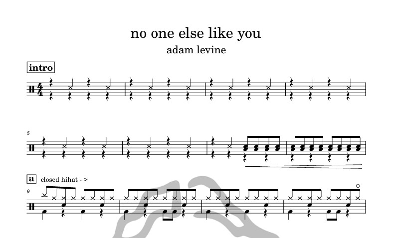 [은규네스튜디오] 드럼악보 adam levine - no one else like you