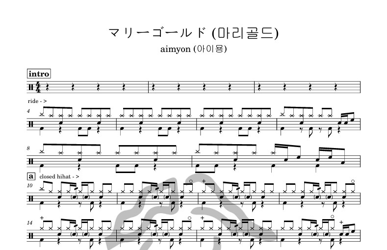 [은규네스튜디오] 드럼악보 aimyon (아이묭) - marigold (마리골드, マリーゴールド)