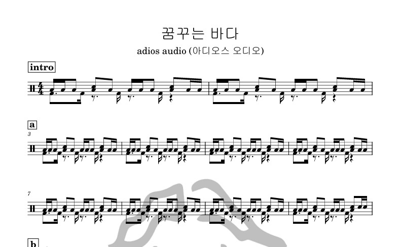 [은규네스튜디오] 드럼악보 adios audio (아디오스 오디오) - 꿈꾸는 바다