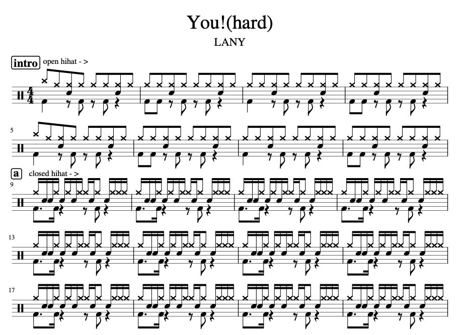 [은규네스튜디오] 드럼악보 lany - you!